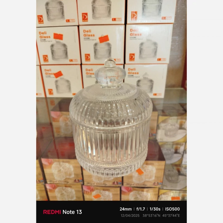 ظرف شیشهای شیاردار با درب کریستالی – زیبایی در جزئیات